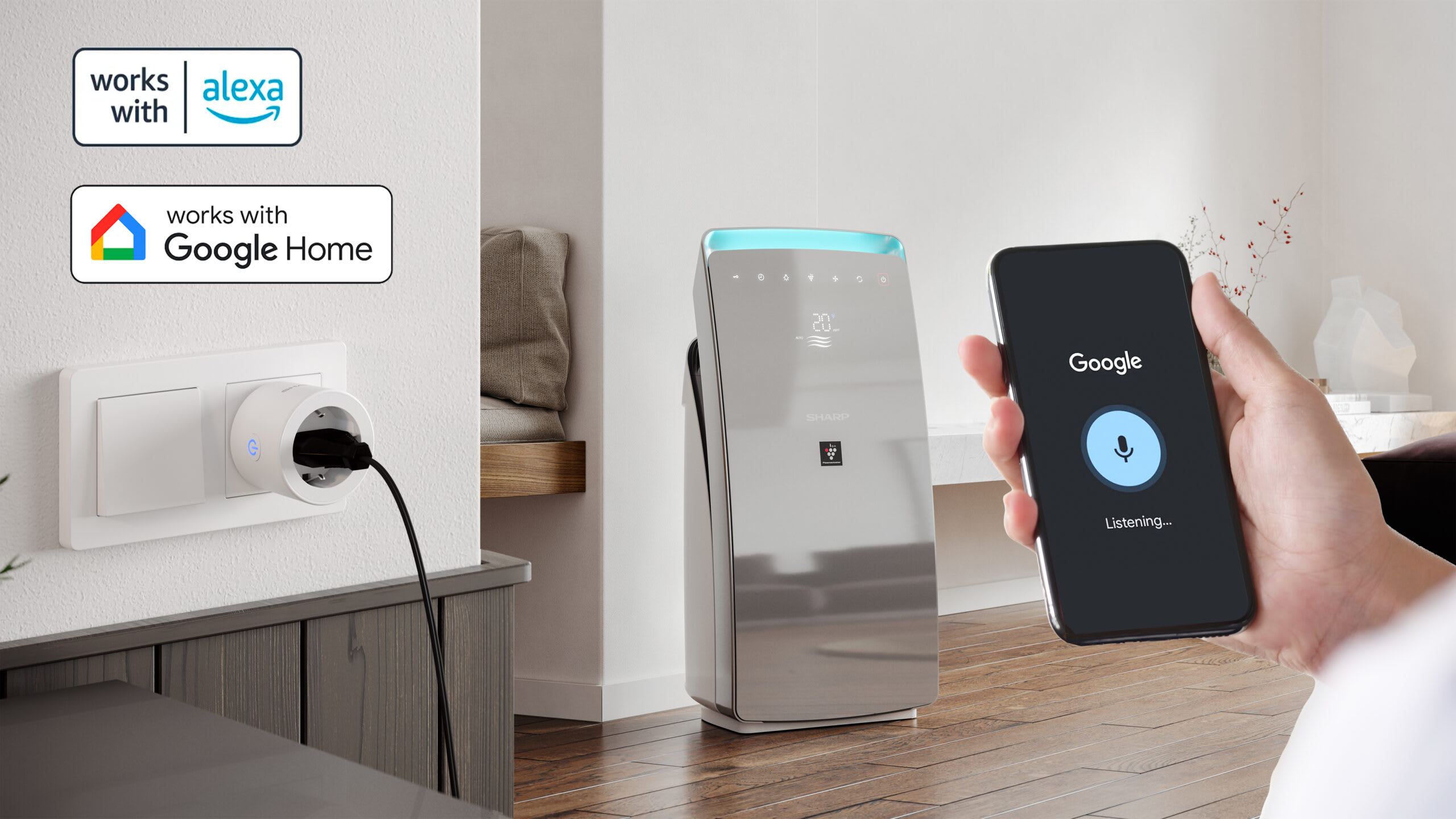 Se quiser controlar a sua ficha inteligente por voz, nada mais simples, ligue-se ao Google Home ou à Alexa e utilize-a como desejar.
