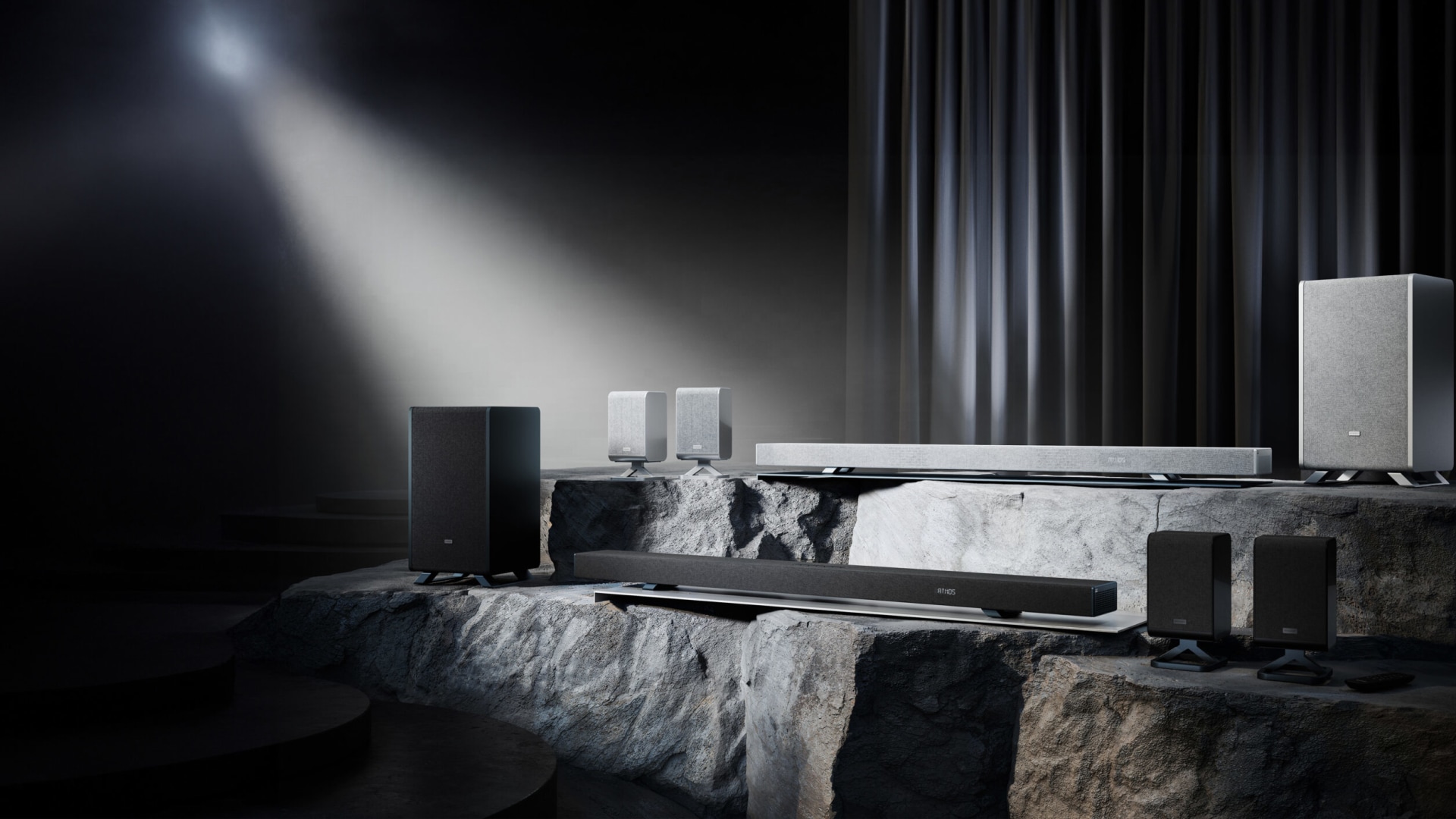 Sinta o som à sua volta — e em movimento consigo. As soundbars SHARP Q com Dolby Atmos® oferecem um palco sonoro 3D impressionante, colocando-o no centro da ação. Para uma configuração de cinema em casa definitiva, as colunas traseiras sem fios opcionais elevam ainda mais a experiência, criando um verdadeiro som surround em toda a sala — potente, preciso e profundamente imersivo.